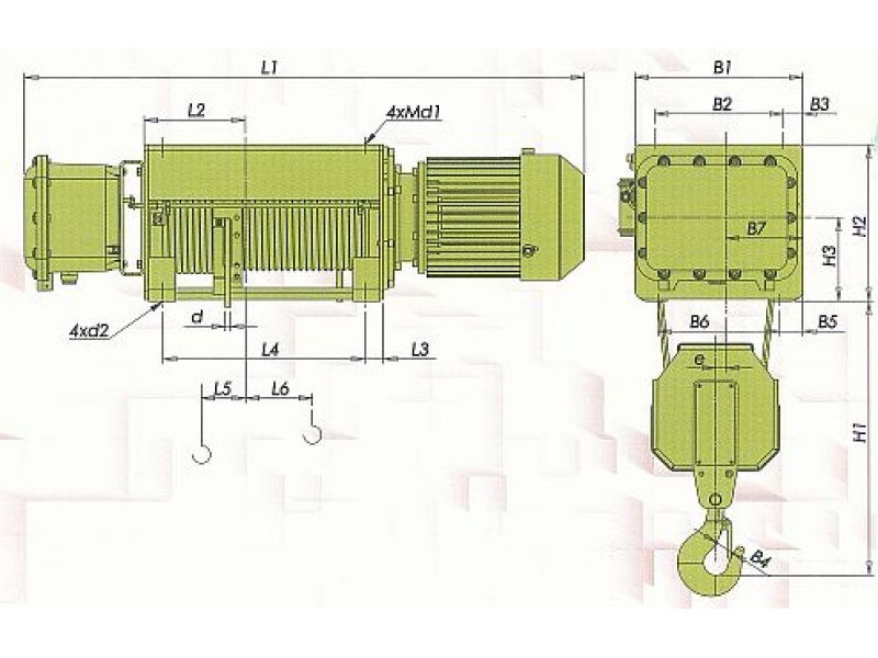 Elektrické lanové kladkostroje pre výbušné prostredie, typu VHVAT s jednonosníkovým elektrickým pojazdom.