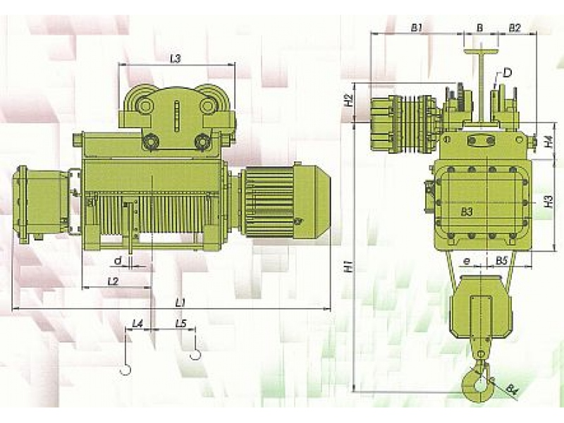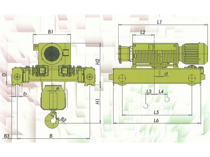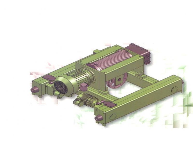 Elektrické lanové kladkostroje pre výbušné prostredie, typu VKVAT s dvojnosníkovým elektrickým pojazdom.